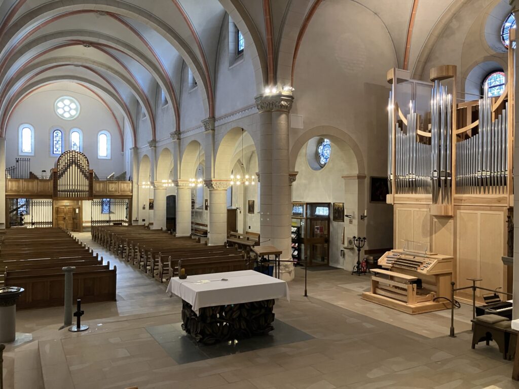Der Kirchenchor wird künftig seinen Platz im nördlichen Querhaus vor der neuen Hauptorgel haben. Damit die Sängerinnen und Sänger dort gut stehen und auch zwischendurch sitzen können – was im Übrigen auf der „alten“ Orgelempore nur sehr bedingt möglich war –, hat der Kirchenvorstand die Beschaffung von neuen Chorpodesten beschlossen. Diese wurden bei der Firma Podestbau Kleu GmbH aus Wuppertal gekauft. Dank der sehr guten Beratung durch Herrn David Kanzler von der Firma Kleu konnte eine maßgeschneiderte Lösung gefunden werden.